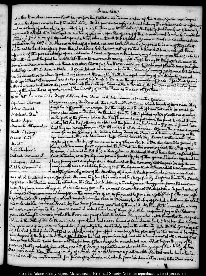 View full, authoritative transcriptions with page images of the diaries at John Quincy Adams Digital Diary part of the Primary Source Cooperative at the MHS.