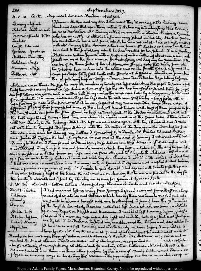View full, authoritative transcriptions with page images of the diaries at John Quincy Adams Digital Diary part of the Primary Source Cooperative at the MHS.