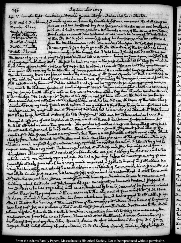 View full, authoritative transcriptions with page images of the diaries at John Quincy Adams Digital Diary part of the Primary Source Cooperative at the MHS.