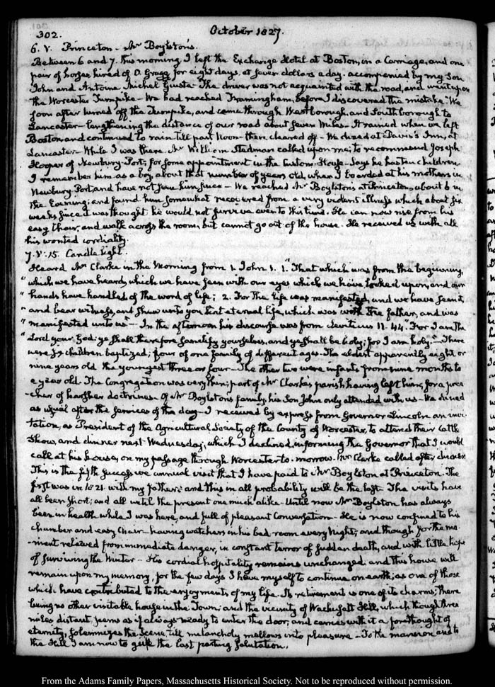 View full, authoritative transcriptions with page images of the diaries at John Quincy Adams Digital Diary part of the Primary Source Cooperative at the MHS.