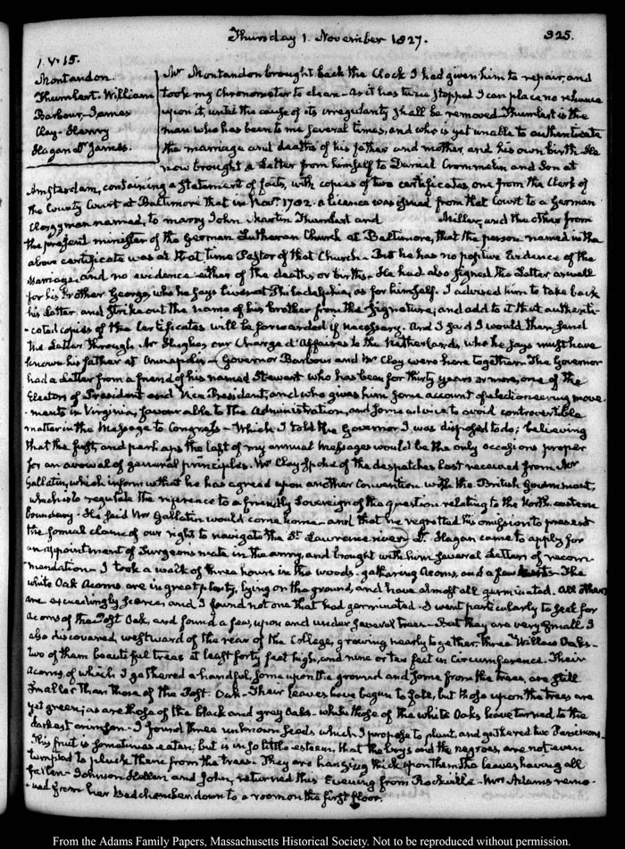 View full, authoritative transcriptions with page images of the diaries at John Quincy Adams Digital Diary part of the Primary Source Cooperative at the MHS.