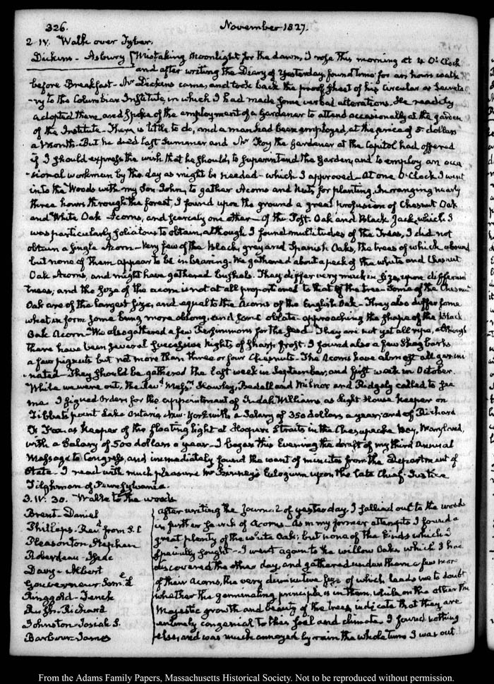 View full, authoritative transcriptions with page images of the diaries at John Quincy Adams Digital Diary part of the Primary Source Cooperative at the MHS.