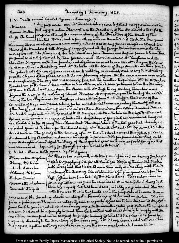 View full, authoritative transcriptions with page images of the diaries at John Quincy Adams Digital Diary part of the Primary Source Cooperative at the MHS.