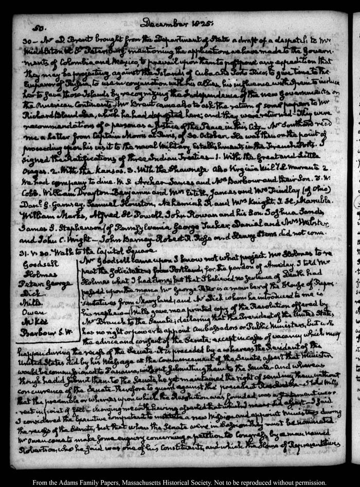 View full, authoritative transcriptions with page images of the diaries at John Quincy Adams Digital Diary part of the Primary Source Cooperative at the MHS.