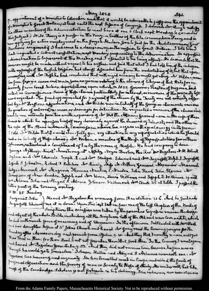 View full, authoritative transcriptions with page images of the diaries at John Quincy Adams Digital Diary part of the Primary Source Cooperative at the MHS.