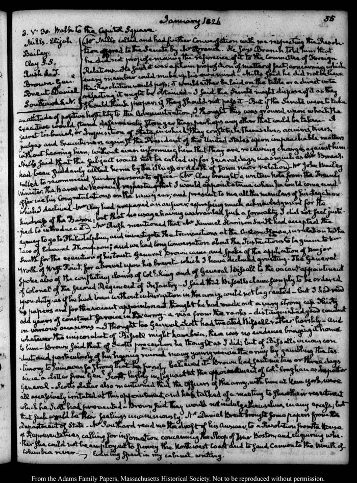 View full, authoritative transcriptions with page images of the diaries at John Quincy Adams Digital Diary part of the Primary Source Cooperative at the MHS.