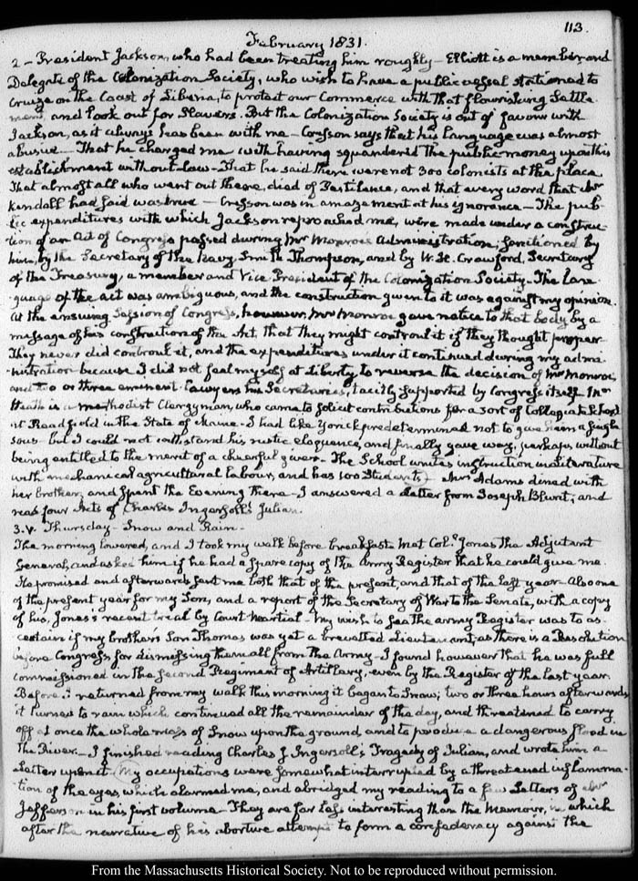 John Quincy Adams diary 38, 1 October 1830 - 24 March 1832, page 113