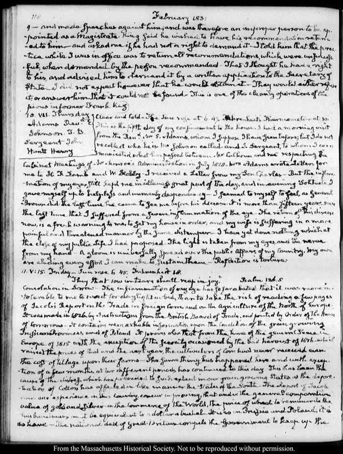 View full, authoritative transcriptions with page images of the diaries at John Quincy Adams Digital Diary part of the Primary Source Cooperative at the MHS.