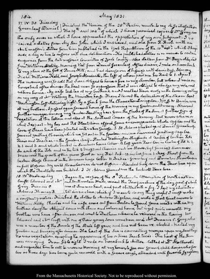 John Quincy Adams diary 38, 1 October 1830 - 24 March 1832, page 184