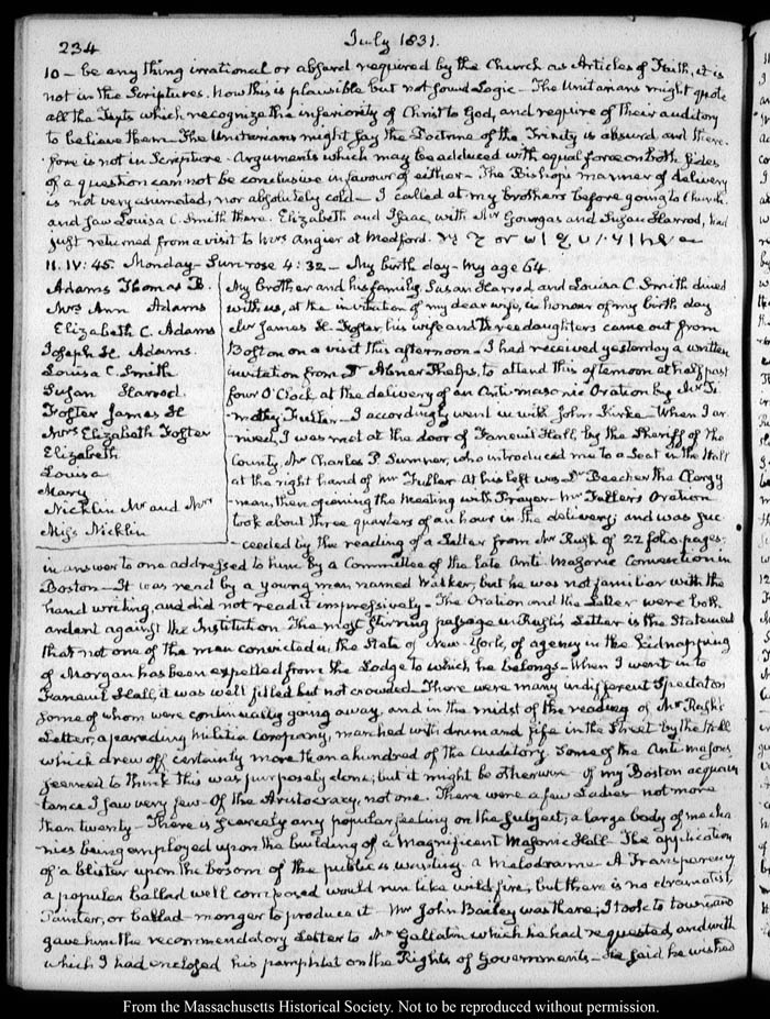 View full, authoritative transcriptions with page images of the diaries at John Quincy Adams Digital Diary part of the Primary Source Cooperative at the MHS.