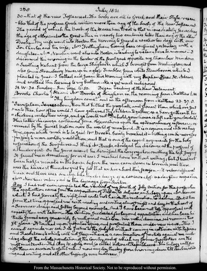 View full, authoritative transcriptions with page images of the diaries at John Quincy Adams Digital Diary part of the Primary Source Cooperative at the MHS.