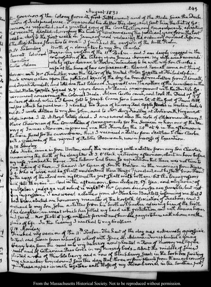John Quincy Adams diary 38, 1 October 1830 - 24 March 1832, page 249
