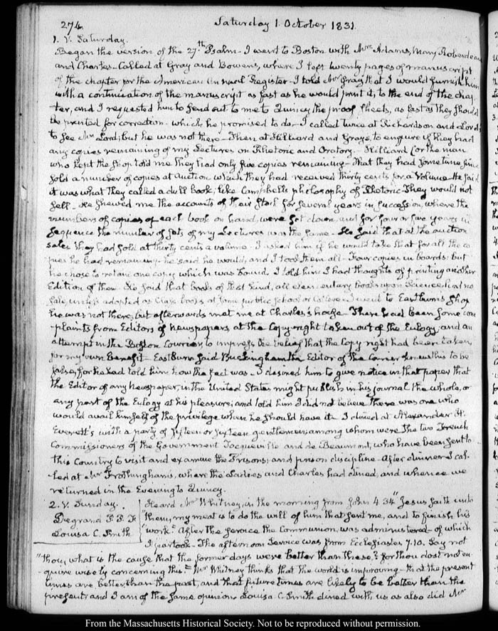 John Quincy Adams diary 38, 1 October 1830 - 24 March 1832, page 274