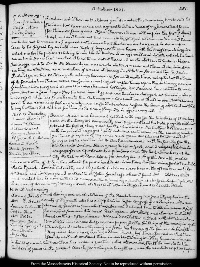 John Quincy Adams diary 38, 1 October 1830 - 24 March 1832, page 281