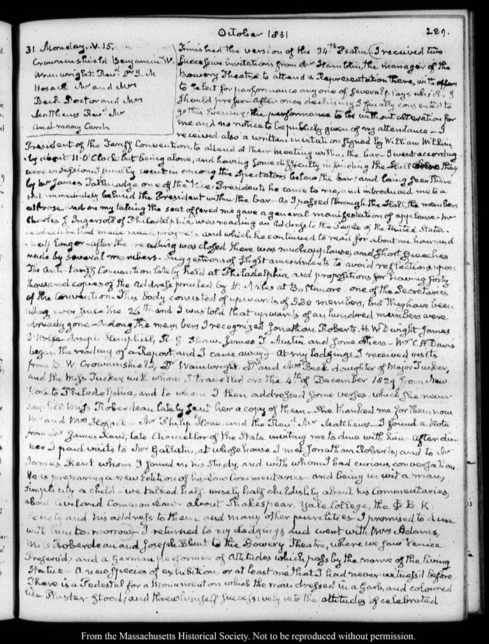 John Quincy Adams diary 38, 1 October 1830 - 24 March 1832, page 289