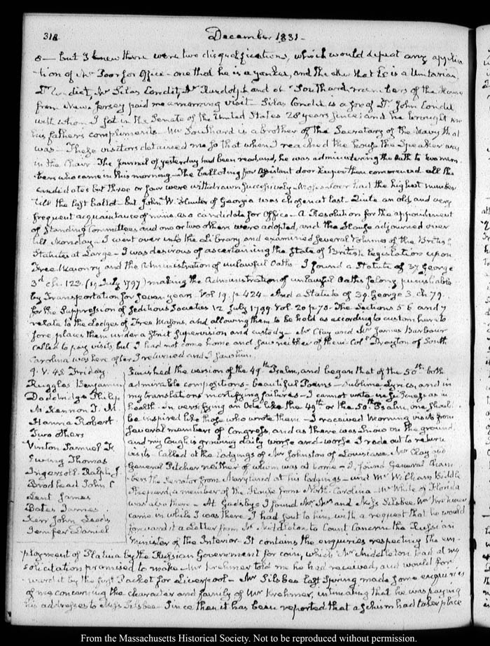 John Quincy Adams diary 38, 1 October 1830 - 24 March 1832, page 318