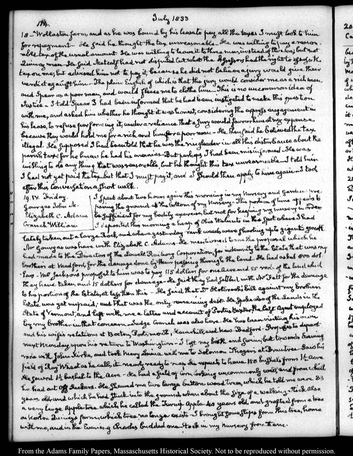 View full, authoritative transcriptions with page images of the diaries at John Quincy Adams Digital Diary part of the Primary Source Cooperative at the MHS.