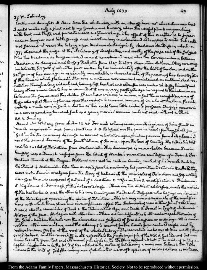 View full, authoritative transcriptions with page images of the diaries at John Quincy Adams Digital Diary part of the Primary Source Cooperative at the MHS.