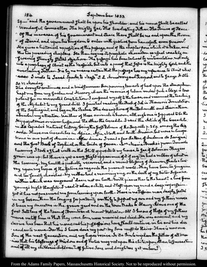 This is our legacy JQA diaries website and allows researchers to view the physical diaries page-by-page.