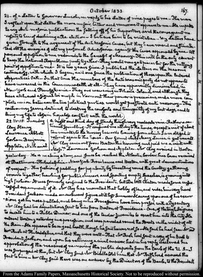 John Quincy Adams diary 39, 1 December 1832 - 31 May 1835, page 167