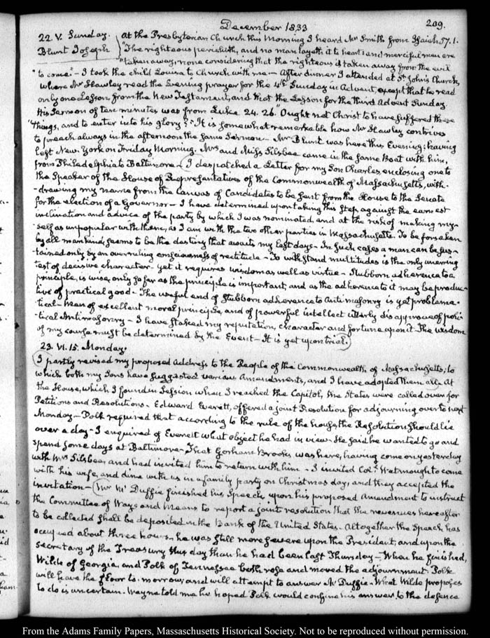 John Quincy Adams diary 39, 1 December 1832 - 31 May 1835, page 209