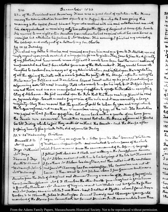 John Quincy Adams diary 39, 1 December 1832 - 31 May 1835, page 210