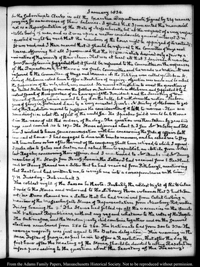 View full, authoritative transcriptions with page images of the diaries at John Quincy Adams Digital Diary part of the Primary Source Cooperative at the MHS.