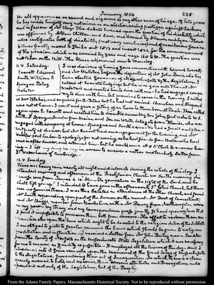 John Quincy Adams diary 39, 1 December 1832 - 31 May 1835, page 225