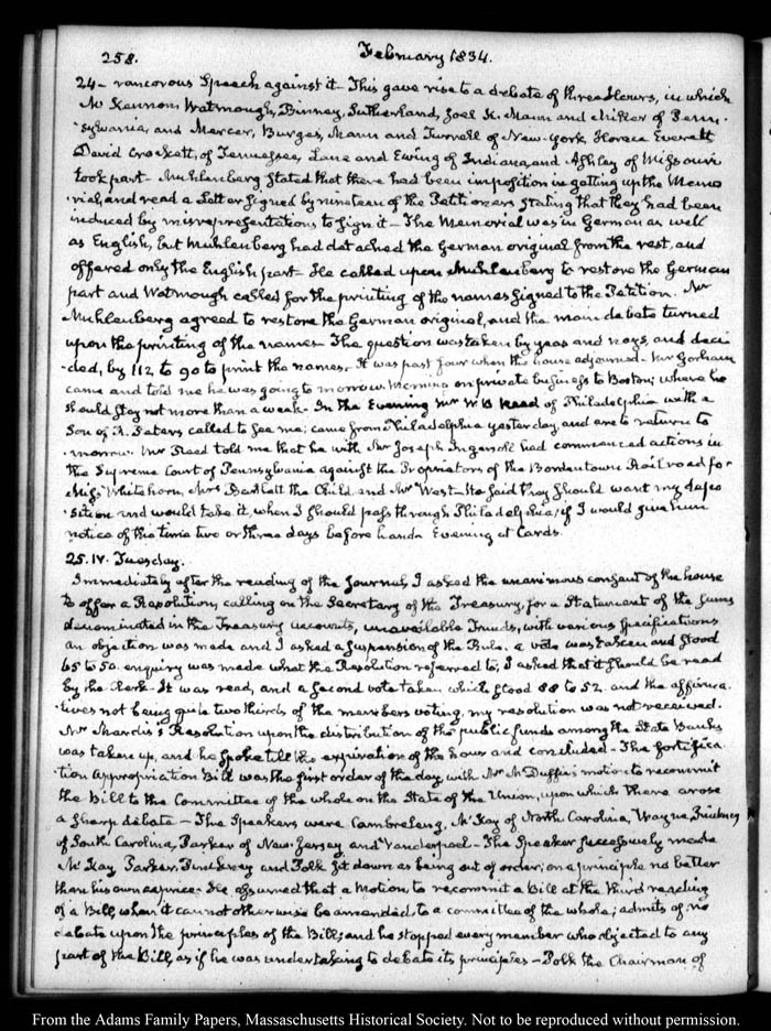 John Quincy Adams diary 39, 1 December 1832 - 31 May 1835, page 258