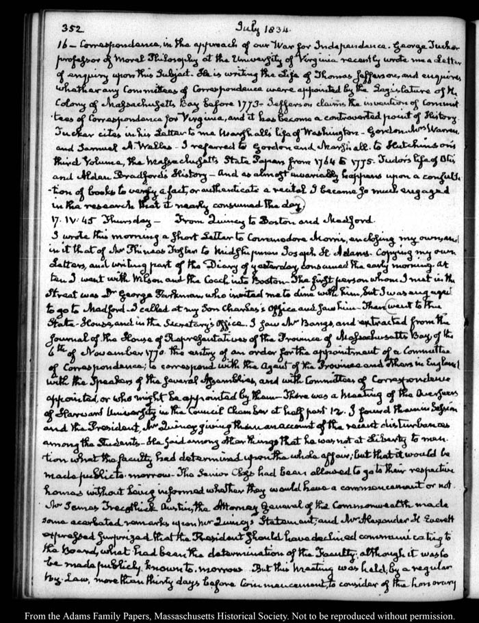 View full, authoritative transcriptions with page images of the diaries at John Quincy Adams Digital Diary part of the Primary Source Cooperative at the MHS.