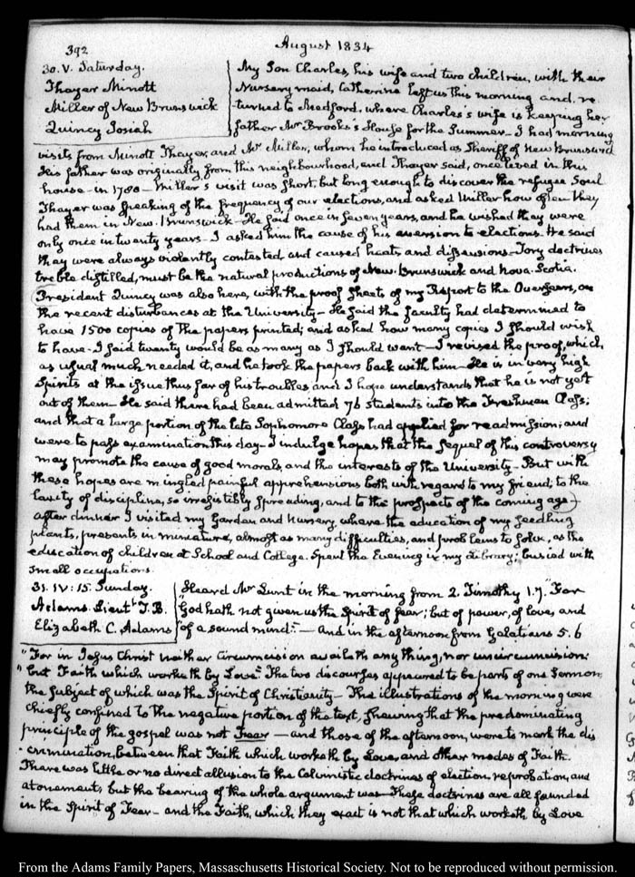 View full, authoritative transcriptions with page images of the diaries at John Quincy Adams Digital Diary part of the Primary Source Cooperative at the MHS.