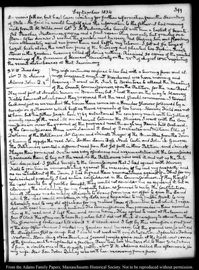View full, authoritative transcriptions with page images of the diaries at John Quincy Adams Digital Diary part of the Primary Source Cooperative at the MHS.