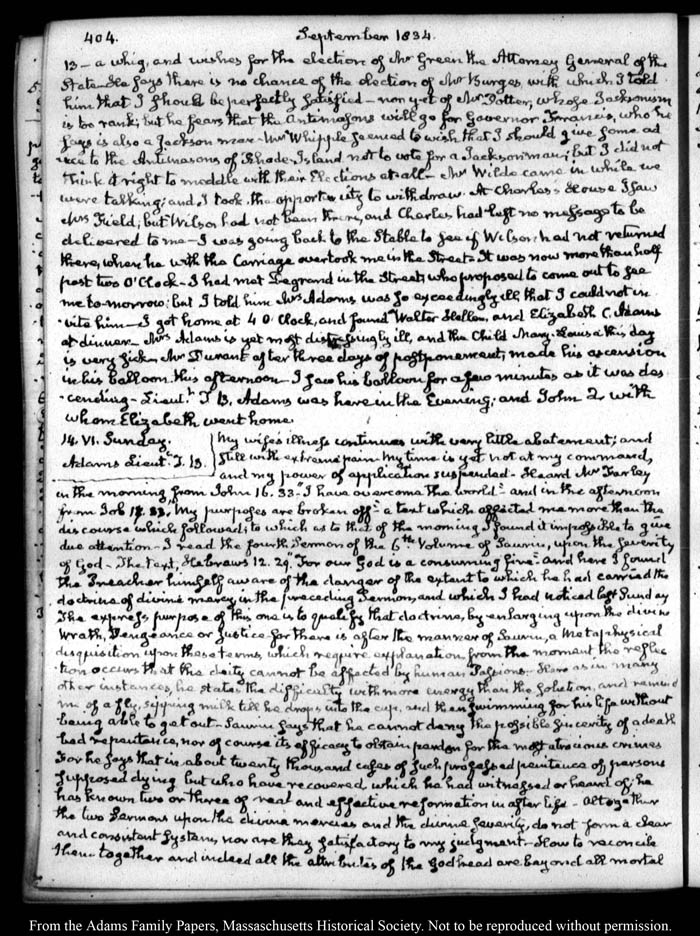 View full, authoritative transcriptions with page images of the diaries at John Quincy Adams Digital Diary part of the Primary Source Cooperative at the MHS.