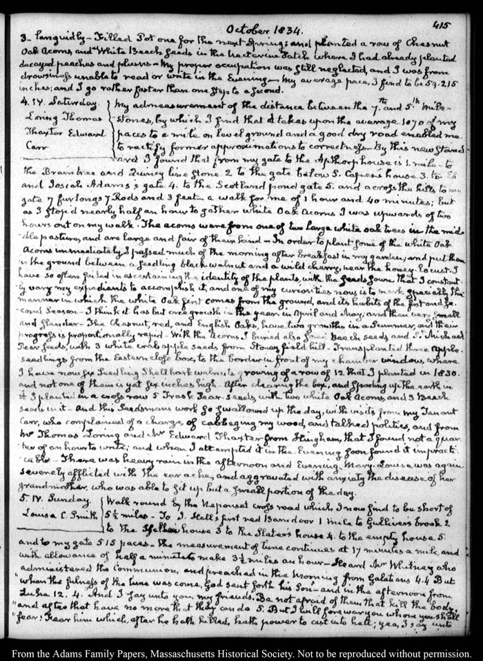 View full, authoritative transcriptions with page images of the diaries at John Quincy Adams Digital Diary part of the Primary Source Cooperative at the MHS.