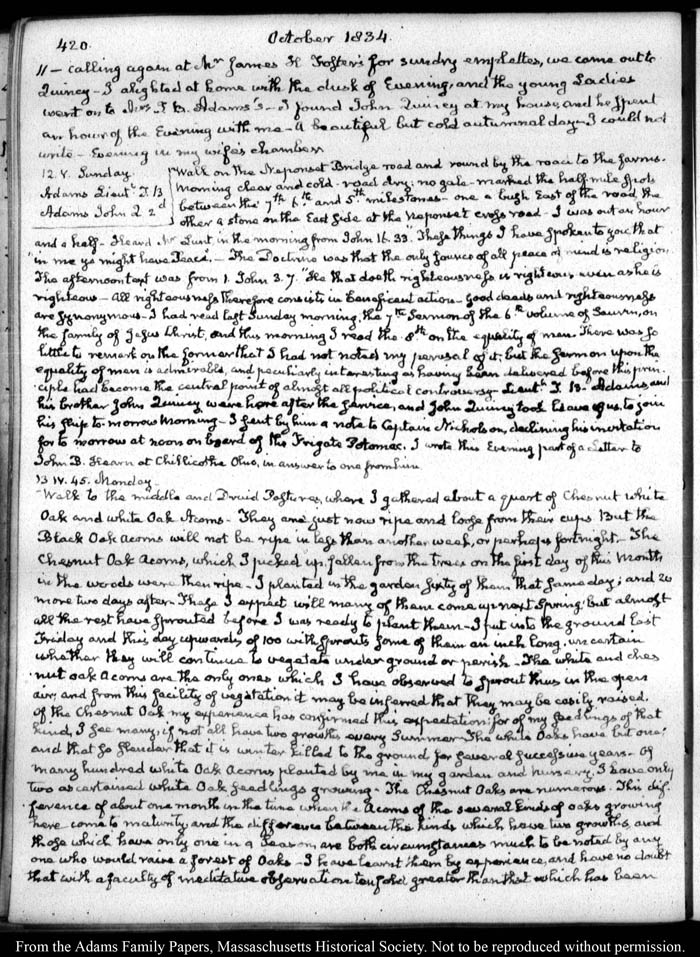 View full, authoritative transcriptions with page images of the diaries at John Quincy Adams Digital Diary part of the Primary Source Cooperative at the MHS.