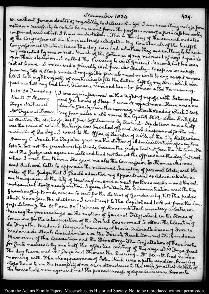 View full, authoritative transcriptions with page images of the diaries at John Quincy Adams Digital Diary part of the Primary Source Cooperative at the MHS.