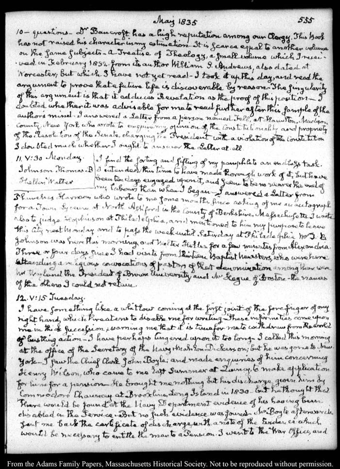 This is our legacy JQA diaries website and allows researchers to view the physical diaries page-by-page.