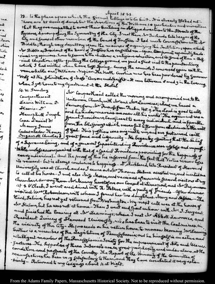 View full, authoritative transcriptions with page images of the diaries at John Quincy Adams Digital Diary part of the Primary Source Cooperative at the MHS.