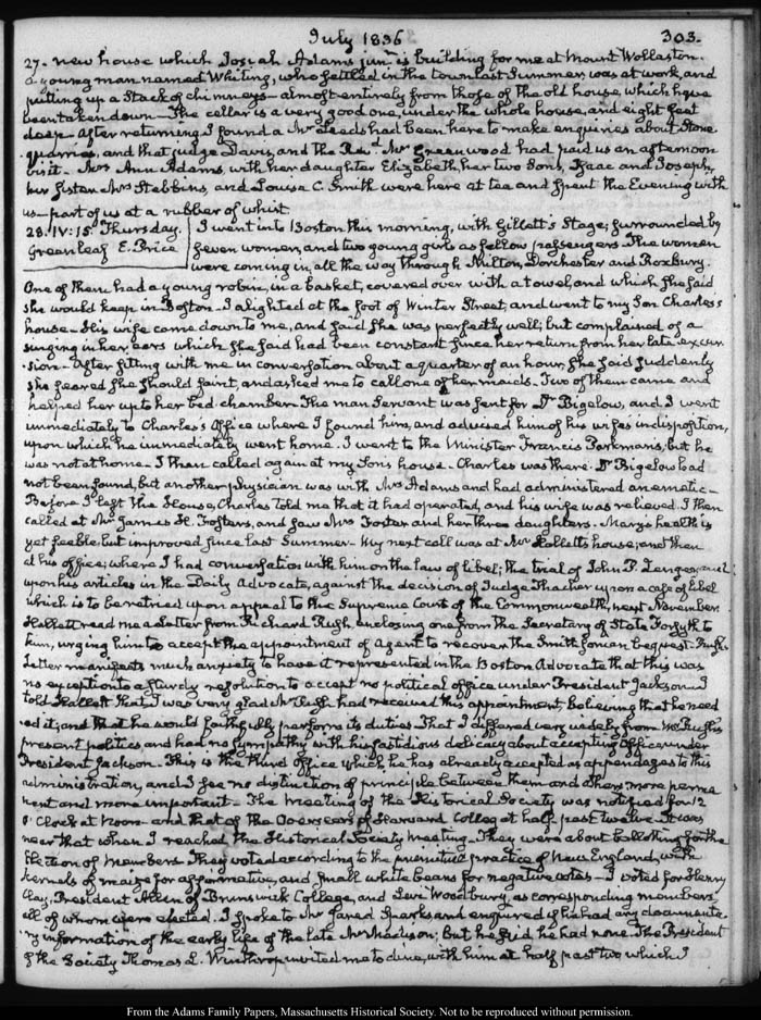 John Quincy Adams diary 40, 1 June 1835 -- 5 December 1836 (with gaps), page 303