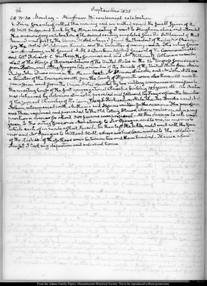 View full, authoritative transcriptions with page images of the diaries at John Quincy Adams Digital Diary part of the Primary Source Cooperative at the MHS.