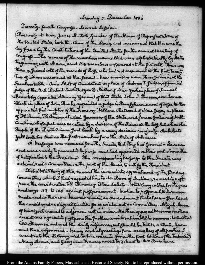 John Quincy Adams diary 41, 5 December 1836 - 4 January 1837, 29 July 1840 - 31 December 1841, page 1