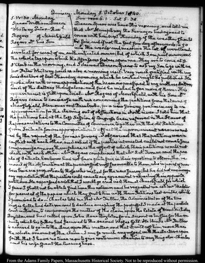 View full, authoritative transcriptions with page images of the diaries at John Quincy Adams Digital Diary part of the Primary Source Cooperative at the MHS.
