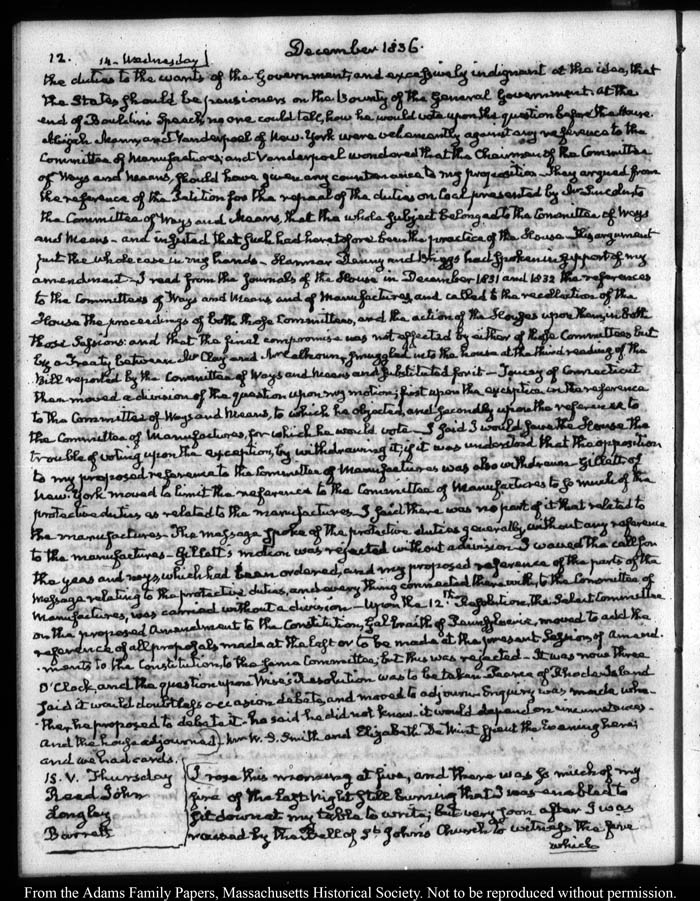 John Quincy Adams diary 41, 5 December 1836 - 4 January 1837, 29 July 1840 - 31 December 1841, page 12