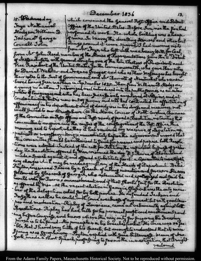 John Quincy Adams diary 41, 5 December 1836 - 4 January 1837, 29 July 1840 - 31 December 1841, page 13