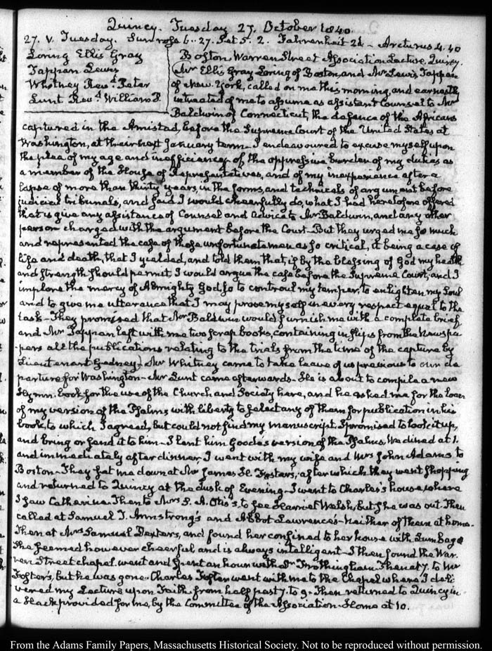 View full, authoritative transcriptions with page images of the diaries at John Quincy Adams Digital Diary part of the Primary Source Cooperative at the MHS.
