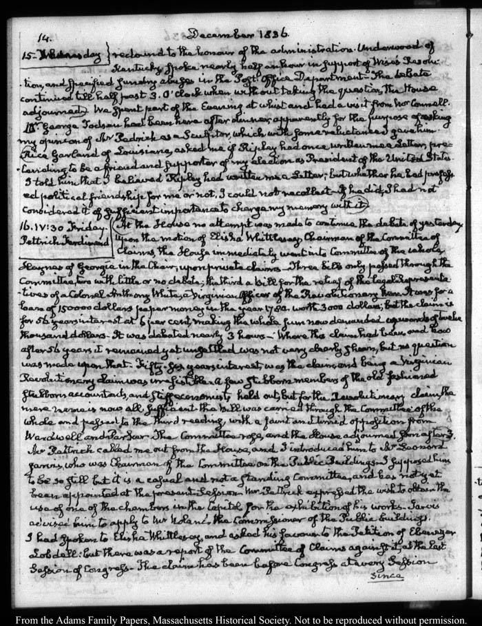 John Quincy Adams diary 41, 5 December 1836 - 4 January 1837, 29 July 1840 - 31 December 1841, page 14