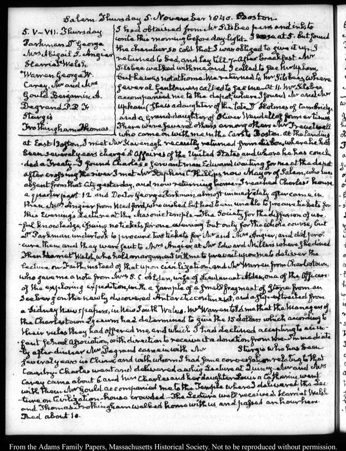 Salem Thursday 5 November 1840. Boston.