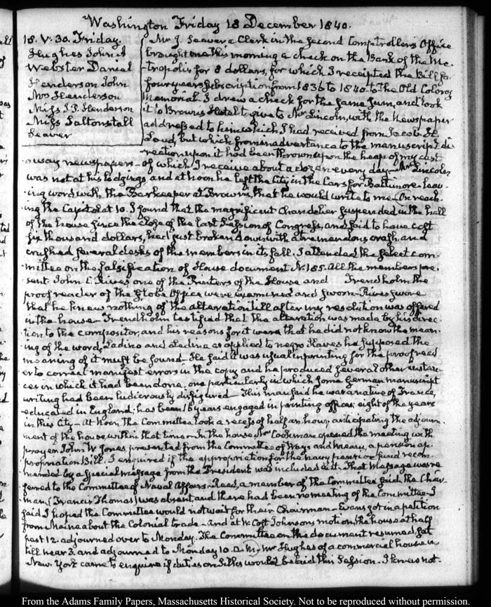 Washington Friday 18 December 1840.