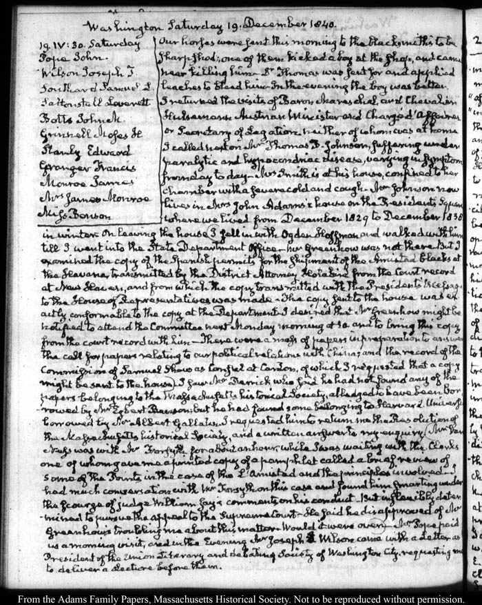 Washington Saturday 19 December 1840