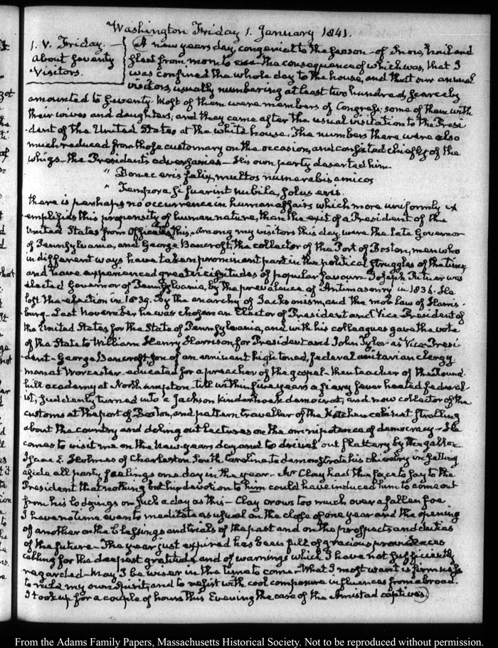 View full, authoritative transcriptions with page images of the diaries at John Quincy Adams Digital Diary part of the Primary Source Cooperative at the MHS.